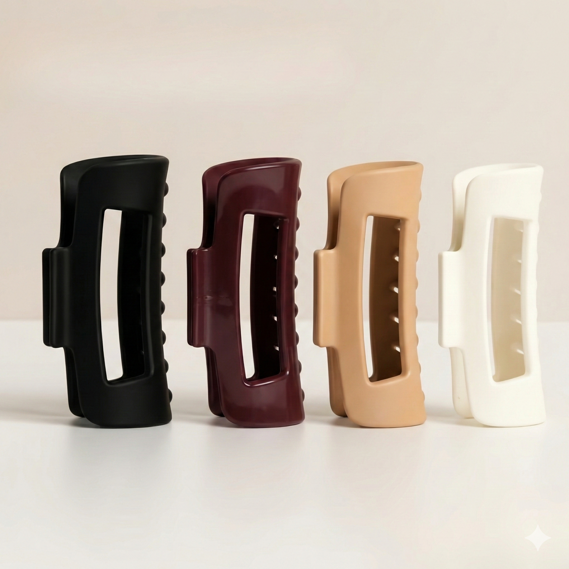 Auropi está fabricado con un polímero flexible de alta resistencia, seleccionado por su equilibrio entre suavidad, agarre y durabilidad. Este material —similar a lo que se usa en accesorios premium importados— permite que el broche no se quiebre fácilmente, no lastime el pelo y conserve su forma con el uso diario.